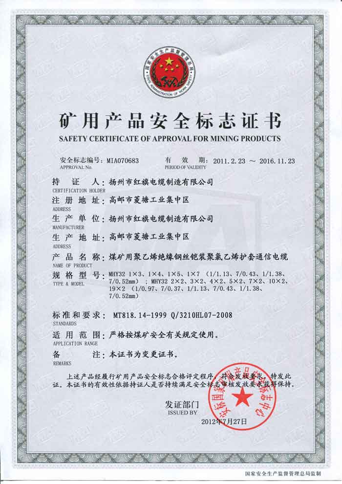 煤礦礦用產(chǎn)品安全標志證書-MHY32